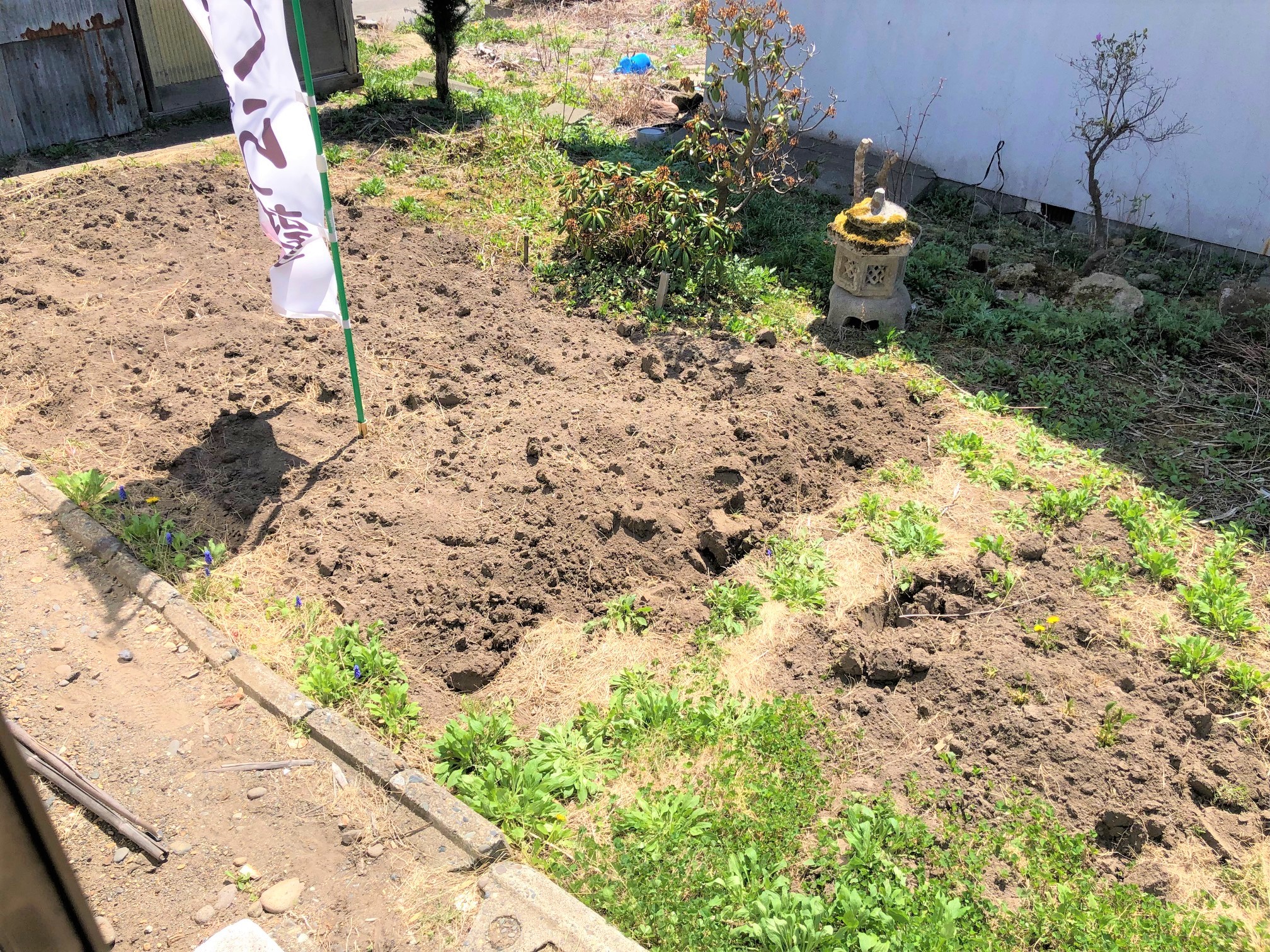 土を掘り起こして、雑草を根っこごと分別するのですが、庭が畑のようになってきました。そこで、今年は野菜を育てます。