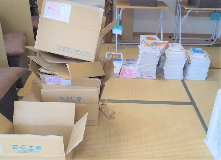 新年度のテキストが到着しました。先週に一応予備もあわせて発注してありましたが、不足するようなので追加注文をかけます。現時点で既にご契約いただいている分はそろっています。