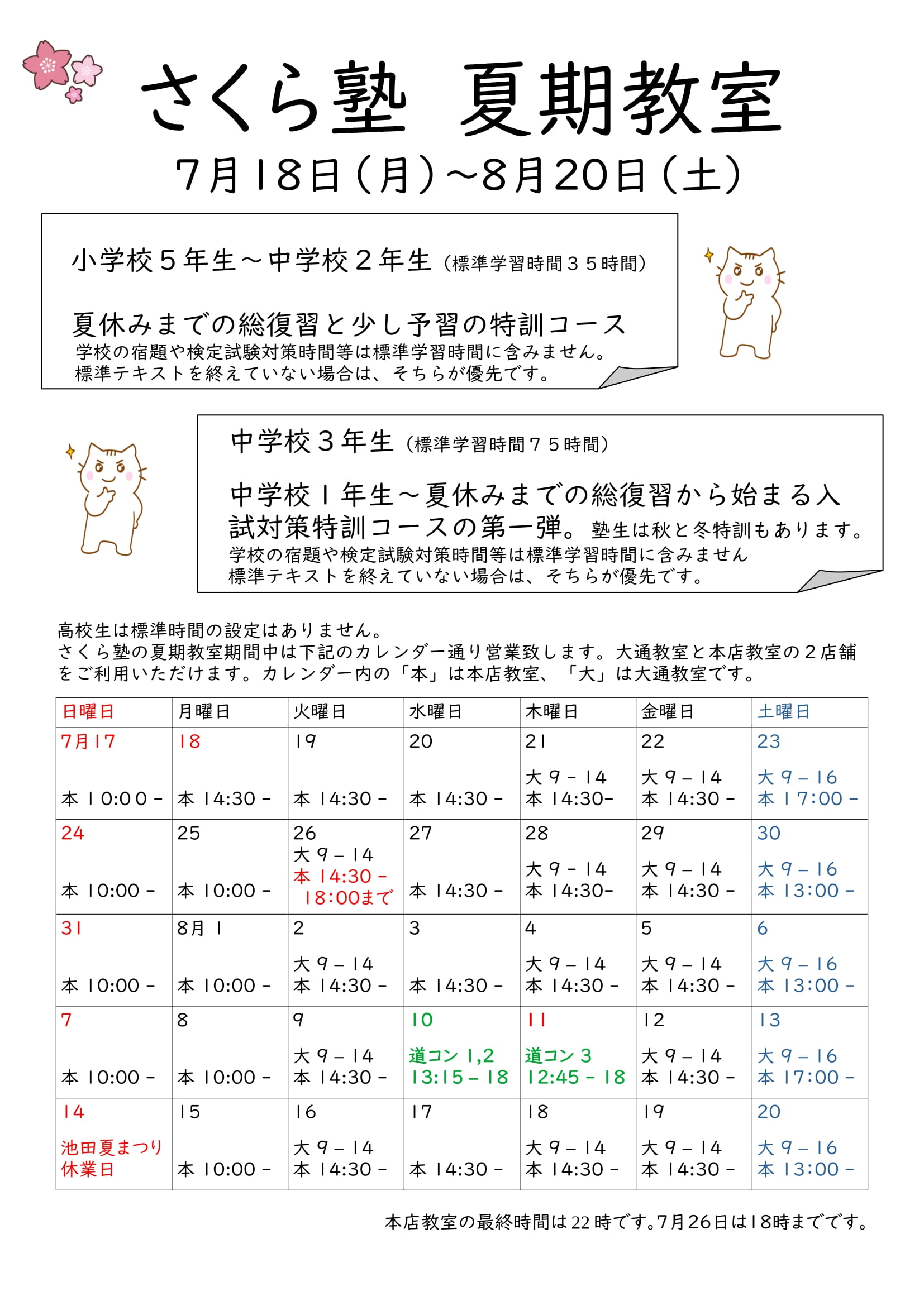 さくら塾の夏期教室期間が始まりました。お知らせブログの方でもご確認いただけるようになっていますが、希望者は猛特訓できるコースを用意しています。初日は土曜日ということで、大通教室と本店教室の両方を使用することになりました。