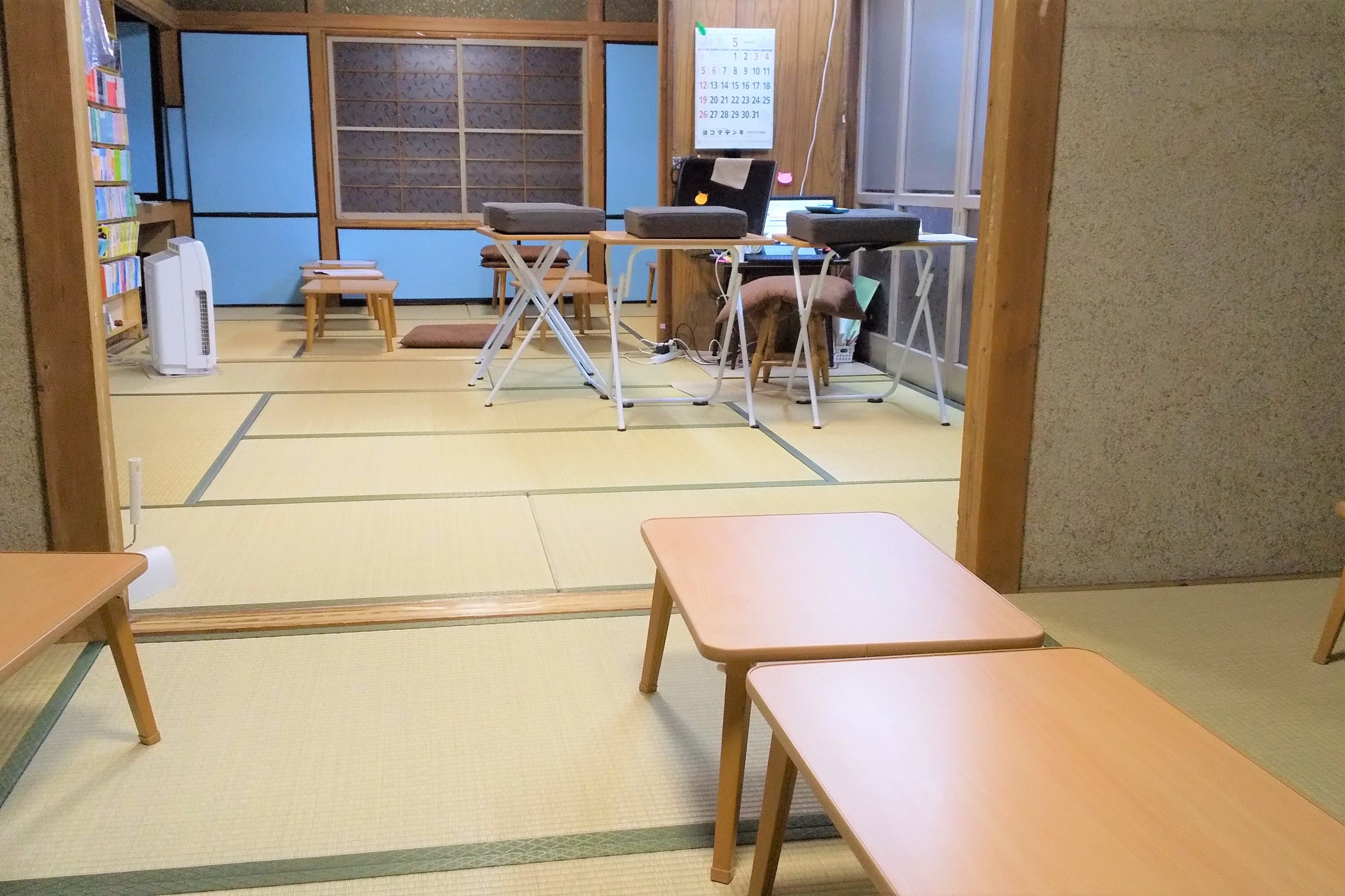 ゴールデンウィーク期間中に部屋を夏仕様に変えました。今年は新たに網戸を新設して2か所開けることができます。中央の部屋にある4席が高くなり、椅子も新しくなっています。そのうち学習室と自習室を入れ替えて自習室を広げます。