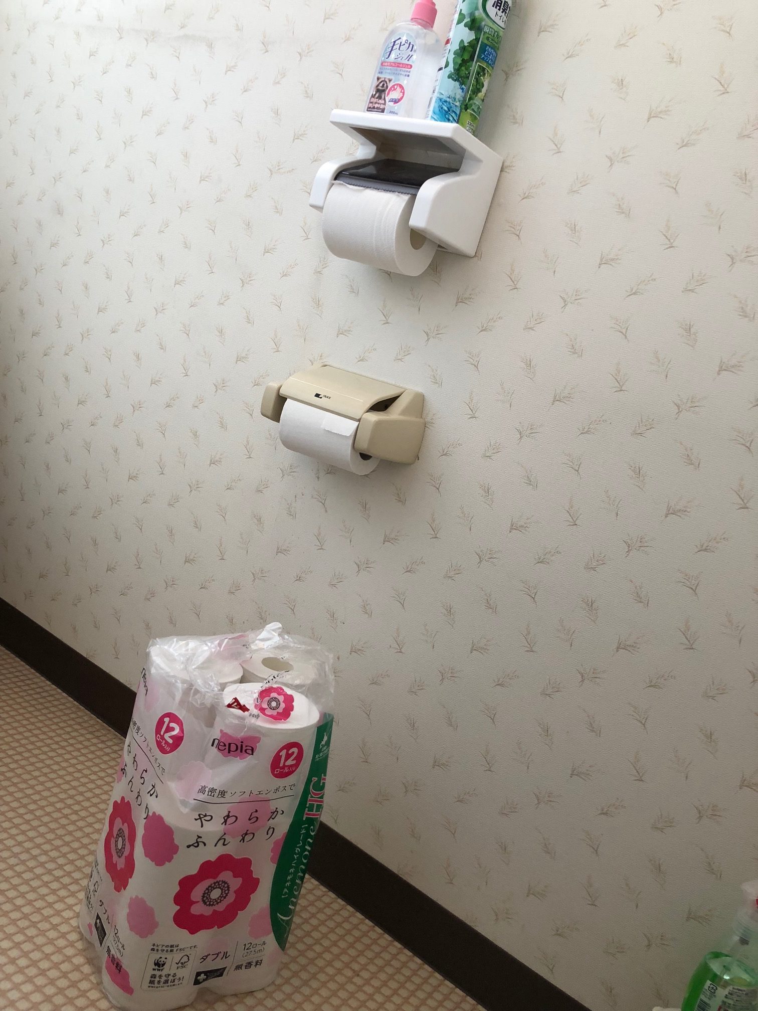 ネピアの高密度ソフトエンボスで「やわらかふんわりハイグレードダブル」。を設置しています。上下にホルダーがついていますが、上段がハイグレードダブル。下段はローグレードシングルがついているので、上段の使用をお勧めしています。